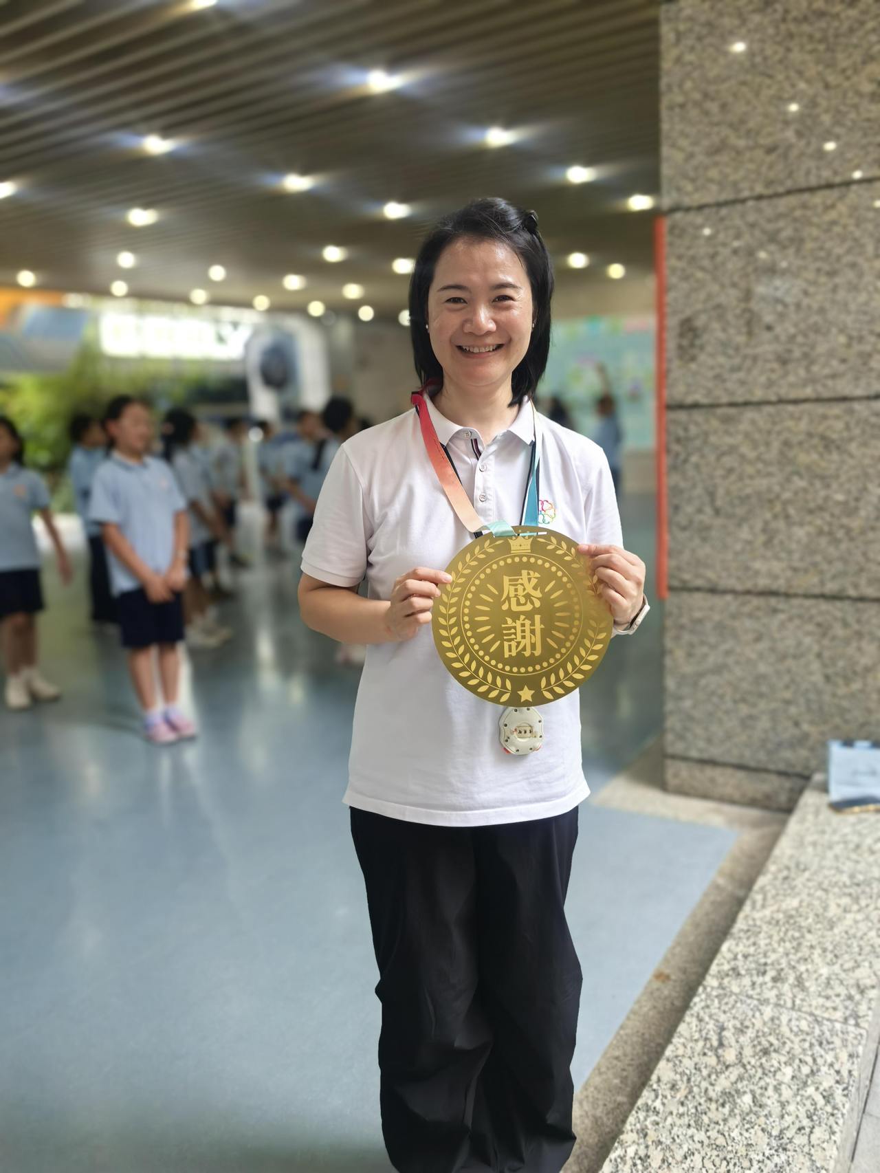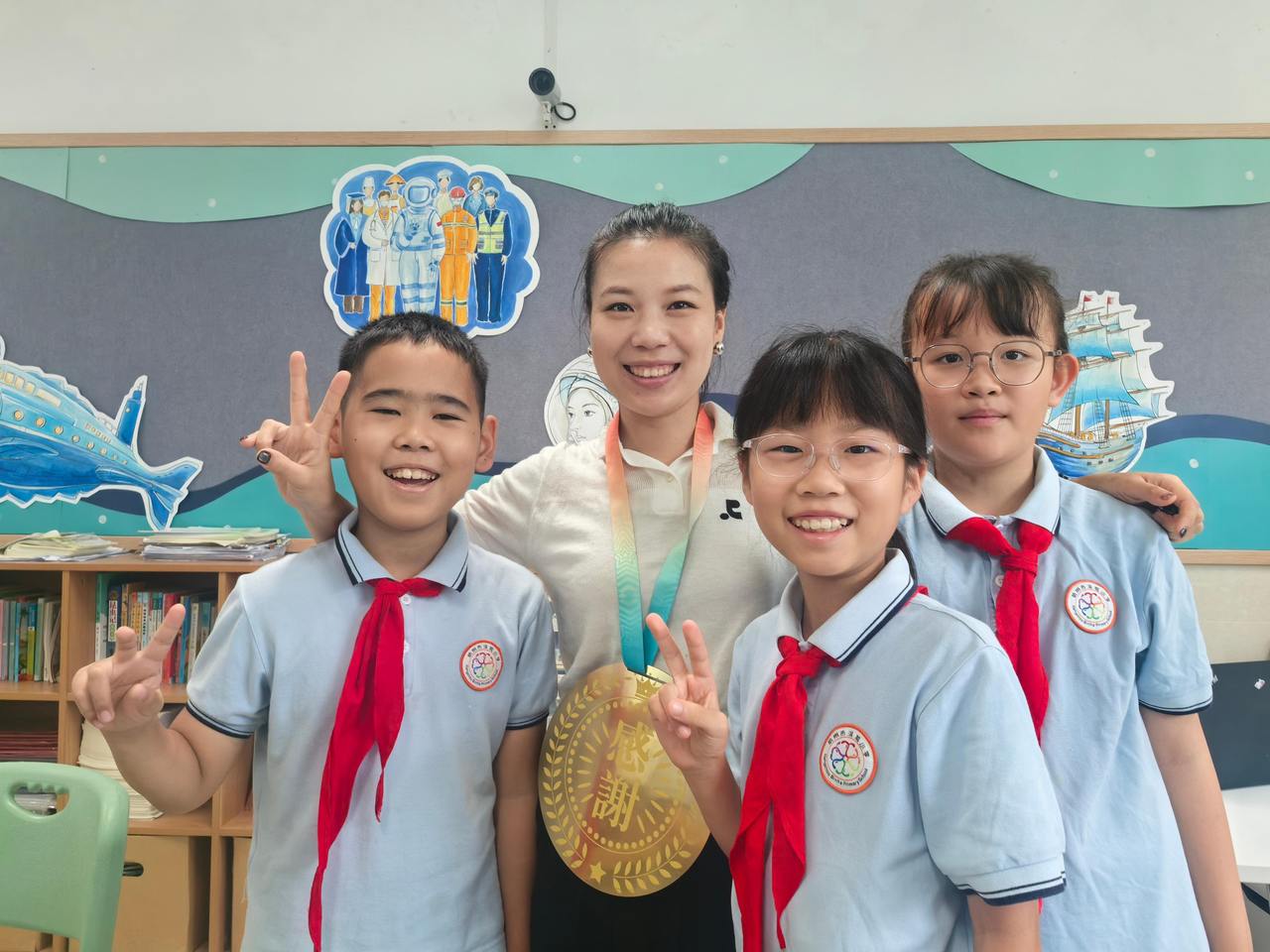 英语张老师接过金牌时,手指不自觉地摩挲着“感谢”二字。当他轻轻翻过背面,看到学生小涛用歪歪扭扭的字迹写着:“我总说不喜欢英语,其实是怕让您失望。”这位年轻的男老师迅速转身,假装整理教案抹了抹眼角。