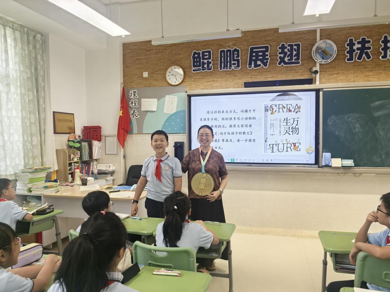 昨天是教师节在线股票配资网站,不少小朋友给老师送出了创意感恩祝福。在杭州市滨和小学,507班的教室门一次次被推开,又一次次引发惊叹——当每一位任课教师踏进教室,课代表就会在全班掌声中,将精心制作的“感恩金牌”庄重地挂在老师颈间。